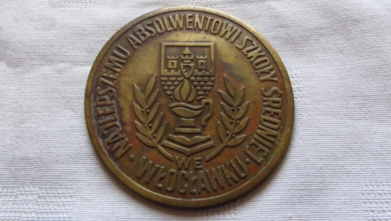 Herb Włocławka na medalu „Najlepszemu absolwentowi szkoły średniej we Włocławku”. Okres PRL.