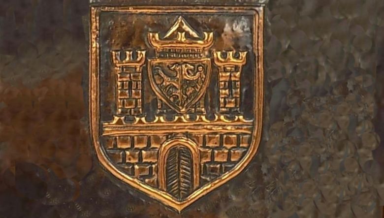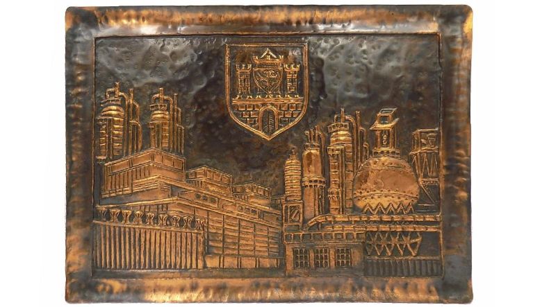 Miedziana plakieta z lat 70. XX wieku. Zakłady Azotowe we Włocławku (obecny Anwil) z herbem miasta.